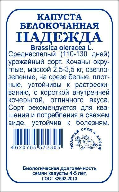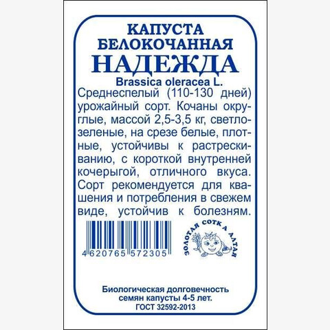 Среднеспелый урожайный сорт. От полных всходов до созревания 110-130 дней. Кочаны округлой формы, массой 2,5-3,5 кг, светло-зеленой окраски, на срезе белые, с короткой внутренней кочерыгой, плотные, устойчивы к растрескиванию, обладают отличными вкусовыми качествами. Сорт рекомендуется для квашения и потребления в свежем виде, устойчив к болезням.