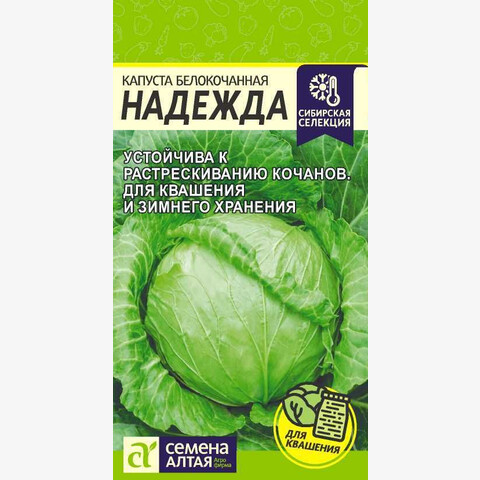 Среднеспелый сорт. Розетка средней величины, полураскидистая. Кочаны округлые и плоско- округлые, массой 2,4-3,4 кг, светло-зеленые, в разрезе белые. Вкусовые качества свежей и квашеной капусты очень высокие. Сорт относительно устойчив к растрескиванию. Предназначен для квашения и зимнего хранения. Место посадки: плодородные рыхлые почвы с нейтральной реакцией среды. Лучшие предшественники — бобовые, тыквенные, картофель, морковь, лук Освещение: обильное, не выносит затенения Предпосевная подготовка: семена замачивают в 0,5% растворе марганцовки на 15 минут. Для стимулирования прорастания замачивают на 20 минут в воде 45°С. Инкрустированные (цветные) семена сеют сухим способом, без замачивания и подготовки Сроки посева: на рассаду высевают за 45-55 дней до высадки (март-апрель), в открытый грунт после схода снега и прогревания почвы до 5-8°С (апрель-май) Посев на рассаду: семена размещают на уплотненном питательном грунте, присыпают слоем земли 2-2,5 см и хорошо уплотняют, обильно поливают теплой водой и накрывают пленкой. До появления всходов размещают в теплом месте +22-25°С. При появлении всходов рекомендовано снизить температуру до +13-15°С днем и +6-8°С ночью на 3-5 дней, для получения коренастых растений, затем снова перенести в теплое хорошо освещенное место. Посев в грунт: в зависимости от региона (апрель-июнь), на глубину 2,0-2,5 см по схеме 60х60 см Пикировка/перевалка: рассаду высаживают в возрасте 50-55 дней во влажную, удобренную почву. Посадочный интервал 60х60 см. После высадки растения притеняют первые 5-7 дней Уход: в течение всего сезона растениям необходимы регулярные обильные поливы, своевременные прополки, рыхление и подкормки азотными и калийными минеральными удобрениями. Хорошо отзывается на внесение микроудобрений, содержащих магний и бор