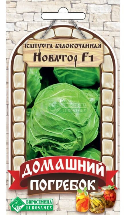 Заготовки на зиму - настоящее искусство, увлекательное и полезное, которое до сих пор остается самым актуальным у миллионов хозяек. Сделанные своими руками закрутки гораздо вкуснее магазинного ассортимента, ведь они адаптированы под вкусы своей семьи и являются желанными на любом столе. Серия Домашний Погребок - это отличный способ сохранить собранные овощи до глубокой зимы и даже до следующей весны. Она скомплектована из подходящих сортов и гибридов для домашнего консервирования, нужно просто закрутить их в банки, добавив различные ингредиенты для улучшения вкуса и продления сроков хранения. Новатор F1- позднеспелый гибрид с хорошо выровненным, округлым, беловатым на срезе, кочаном, массой 4,0-4,5 кг. Рекомендуется гибрид для использования в свежем виде, всех видов переработки и длительного хранения.