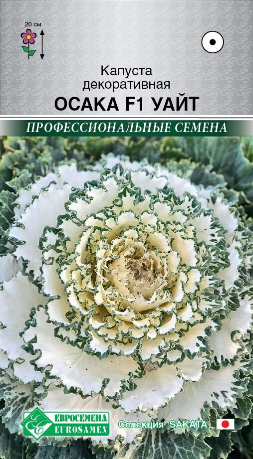 Декоративная капуста давно используется для украшения парковых дорожек, клумб и площадей в Европе и Азии, ландшафтный дизайн позволяет использовать это красивое растение в течение длительного времени. Она зацветает в июле и продолжает формировать розетку до сентября. Ее листья образуют многоцветную красивую розетку, напоминающую розу. Осака- декоративная капуста, обладательница красочных листьев с волнистыми краями, которые образуют компактные розетки. Эта кокетливая красавица с большим удовольствием исполнит задорный танец на солнечной клумбе. Окраска наружных листьев розетки темно-зеленого цвета, а внутренние листья имеют белую окраску. Ну как не покрасоваться перед всеми в таком наряде! Максимального декоративного эффекта растение достигает с наступлением осенних заморозков. Подходит для заполнения пространства в цветнике после окончания цветения летников. Сохраняет привлекательность даже после наступления морозов.