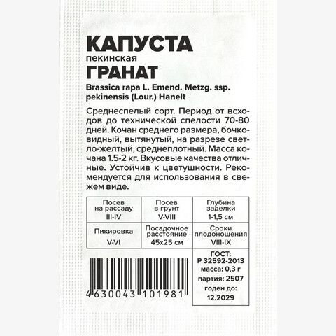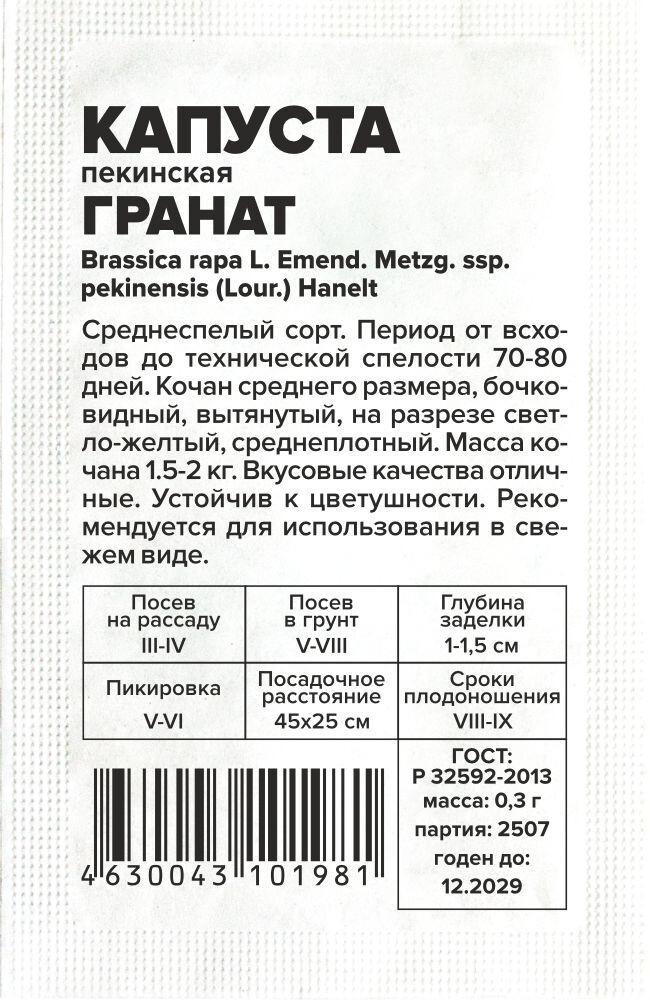 Капуста Пекинский Гранат/Сем Алт/бп 0,3 гр. АЗИАТСКИЙ ОГОРОД!