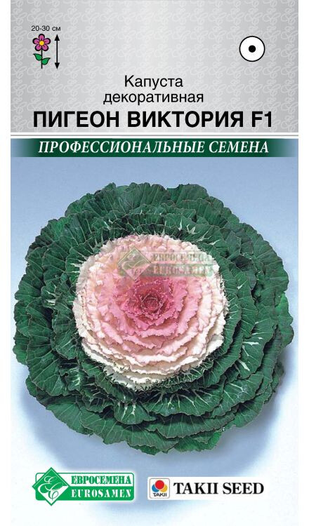 Пигеон Виктория F1 однолетний холодостойкий гибрид компактного типа с крупными экзотическими цветками на прочных стеблях. Формирует крупную розетку близко к земле, листья у нее округлой формы с гофрированным волнистым краем. Она не зря считается одним из изысканных украшений, идеально подходящим для осенних садов и ландшафтов открытого грунта, так как продлевает жизнь цветущей клумбы до начала зимы. С понижением температуры воздуха центральные листья кочана-розетки начинают окрашиваться, максимальную декоративность и интенсивность окраски они приобретают на открытом солнце к середине осени. Регулярный полив обеспечивает пышность формы орнаментальной капусты. Очень неприхотливое растение. Используется как однолетник в одиночных и групповых посадках в озеленении садов и парков, для оформления миксбордера, создания оригинальных и эффектных композиций.