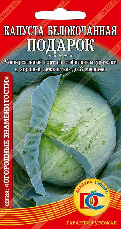 Популярный среднеспелый, высокоурожайный сорт. Кочаны округлые и округло-плоские, наружная окраска зеленовато-белая, массой до 4 кг, очень плотные, устойчивы к растрескиванию. Отличается высокими вкусовыми качествами свежей и особенно квашеной продукции, хорошей транспортабельностью, лежкостью до 8 месяцев.