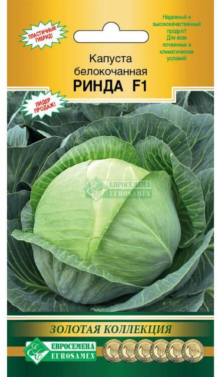 Добро пожаловать в мир высококачественных профессиональных семян Полезные свойства капусты трудно переоценить. Капуста богата витаминами А, В1, Р, К, В6, U. Она – лидер среди овощей по содержанию витамина С, который сохраняется в капусте как при длительном хранении в сыром виде, так и при термической обработке. Ринда F1 - высокоурожайный и очень пластичный, среднеранний гибрид с прекрасной структурой кочанов и слегка раскидистыми кроющими листьями. От высадки рассады до уборки кочанов 80-85 дней. Образует округлые, сочные, плотные, с короткой кочерыгой, кочаны. Масса готовой продукции 4-8 кг. Долго сохраняет товарность. Один из лучших гибридов для квашения, потребления в свежем виде и хранения до января месяца. Капуста богата углеводами, белками, витаминами и минеральными веществами.