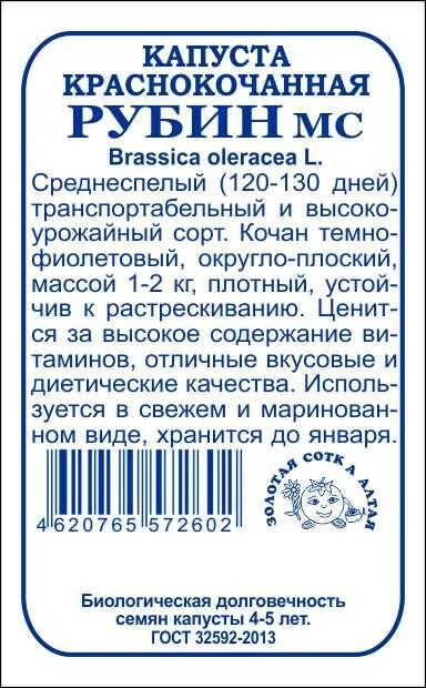 Среднеспелый транспортабельный и высокоурожайный сорт. От высадки рассады в грунт до созревания 120-130 дней. Кочан округло-плоский, темно-фиолетовый, массой 1-2 кг, плотный, устойчив к растрескиванию. Сорт ценится за высокое содержание витаминов, отличные вкусовые и диетические качества. Рекомендуется для использования в свежем виде и маринования, хранится до января.
