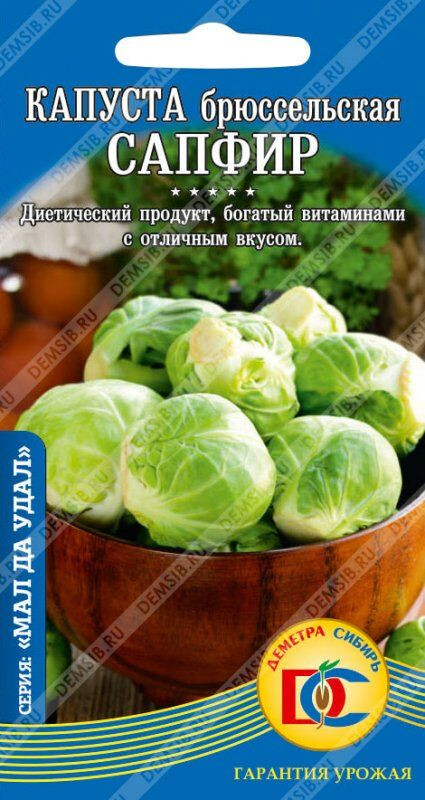 Позднеспелый (110-120 дней) высокоурожайный сорт. Кочанчики округлые, плотные, массой 8-14 г, на одном растении их до 60штук. Общая масса с одного растения до 800 г. Кочанчики обладают отличными вкусовыми и диетическими качествами. В них содержится втрое больше витаминов, чем у белокочанной капусты.