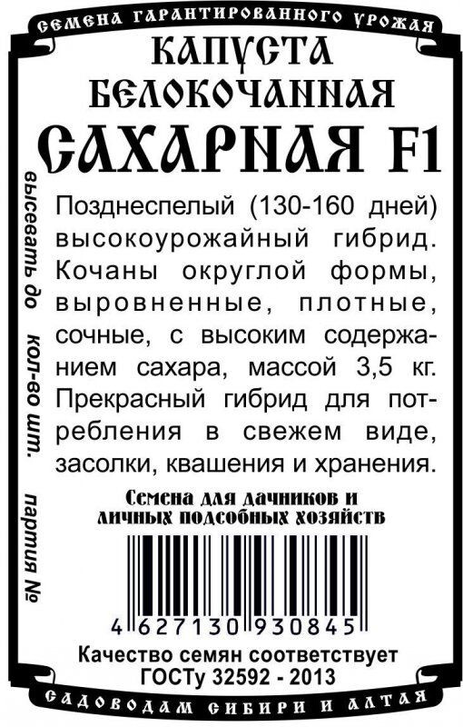 • Позднеспелый (130-160 дней) высокоурожайный сорт. Кочаны округлой формы, выровненные, плотные, сочные, с высоким содержанием сахара, массой 3,5 кг. Прекрасный сорт для засолки, квашения и хранения.