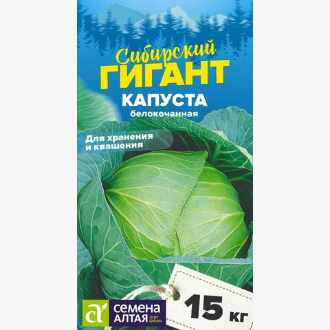 Серия Сибирский гигант – богатырский размер и богатый урожай. Позднеспелый (130-140 дней) урожайный сорт с крупными отборными кочанами, которые при правильном уходе и соблюдении агротехники достигают массы 15 кг. Кочаны округлые или плоскоокруглые, выравненные, плотные, на разрезе белые, необыкновенно хороши для квашения. Вкусовые качества отличные, салаты из свежих кочанов сочные, сладкие, нежные и хрустящие. Сорт отлично хранится в течение 6-8 месяцев. Место посадки: плодородные рыхлые почвы с нейтральной реакцией среды. Лучшие предшественники — бобовые, тыквенные, картофель, морковь, лук Освещение: обильное, не выносит затенения Предпосевная подготовка: семена замачивают в 0,5% растворе марганцовки на 15 минут. Для стимулирования прорастания замачивают на 20 минут в воде 45°С. Инкрустированные (цветные) семена сеют сухим способом, без замачивания и подготовки Сроки посева: на рассаду высевают за 45-55 дней до высадки (март-апрель), в открытый грунт после схода снега и прогревания почвы до 5-8°С (апрель-май) Посев на рассаду: семена размещают на уплотненном питательном грунте, присыпают слоем земли 2-2,5 см и хорошо уплотняют, обильно поливают теплой водой и накрывают пленкой. До появления всходов размещают в теплом месте +22-25°С. При появлении всходов рекомендовано снизить температуру до +13-15°С днем и +6-8°С ночью на 3-5 дней, для получения коренастых растений, затем снова перенести в теплое хорошо освещенное место. Посев в грунт: в зависимости от региона (апрель-июнь), на глубину 2,0-2,5 см по схеме 60х60 см Пикировка/перевалка: рассаду высаживают в возрасте 50-55 дней во влажную, удобренную почву. Посадочный интервал 60х60 см. После высадки растения притеняют первые 5-7 дней Уход: в течение всего сезона растениям необходимы регулярные обильные поливы, своевременные прополки, рыхление и подкормки азотными и калийными минеральными удобрениями. Хорошо отзывается на внесение микроудобрений, содержащих магний и бор