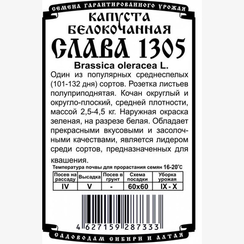 Один из популярных среднеспелых (101-132 дня) сортов. Розетка листьев полуприподнятая. Кочан округлый и округло-плоский, средней плотности, массой 2,5-4,5 кг. Наружная окраска зеленая, на разрезе белая. Обладает прекрасными вкусовыми и засолочными качествами, является лидером среди сортов, предназначенных для квашения.