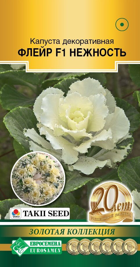 Декоративная капуста давно используется для украшения парковых дорожек, клумб и площадей в Европе и Азии, ландшафтный дизайн позволяет использовать это красивое растение в течение длительного времени. Она зацветает в июле и продолжает формировать розетку до сентября. Ее листья образуют многоцветную красивую розетку, напоминающую розу. Флейр- обладательница красочных листьев с волнистыми краями, которые образуют компактные розетки. Эта кокетливая красавица с большим удовольствием исполнит задорный танец на солнечной клумбе. Окраска наружных листьев розетки темно-зеленая, а внутренние листья имеют белоснежную окраску. Ну как не покрасоваться перед всеми в таком наряде! Подходит для срезки и для заполнения пространства в цветнике после окончания цветения летников. Исключительно долго стоит в срезанном виде.