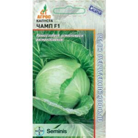 Ранний гибрид. Розетка листьев компактная, окраска листьев зеленая. Кочан некрупный, округлый с плотной внутренней структурой, на срезе белоснежной окраски. Масса кочана до 2 кг. Гибрид ЧАМП F1 устойчив к растрескиванию и бактериозам. Вкусовые качества отличные, капуста сочная и сладкая. Используется для получения ранней продукции и употребления в свежем виде.