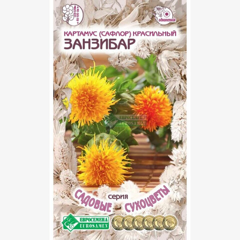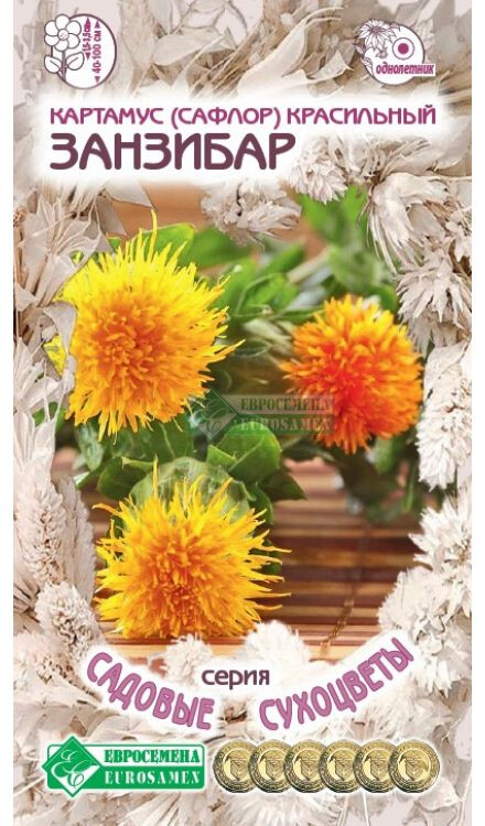 Сафлор красильный, он же американский шафран, дикий шафран, красильный чертополох - однолетнее растение родом из Азии и Средиземноморья, в культуре встречается сафлор красильный, называние растения происходит от арабского названия, красильный он потому, что им красят ткани, подкрашивают пищевые продукты, входит он и в состав сухих румян. В некоторых странах сафлор является самой любимой садовой культурой, он популярен как у флористов, так и у цветоводов. Его выращивают ради красочных соцветий, которые используют для составления букетов из живых или высушенных цветов. Для живых букетов его срезают, когда распускаются первые цветочки, для составления композиций из сухоцветов побеги сушат, срезая их, когда все цветки окажутся полностью раскрытыми. Соцветия появляются в период с июня по сентябрь и окрашены в желто-оранжевый цвет, они могут стать украшением бордюров, особенно в тех, в которых используются полевые цветы.