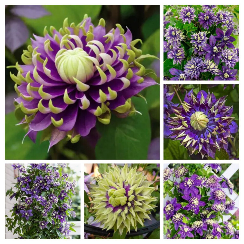 | Цветы: фиолетово-голубые с зелёно-жёлтыми на окончаниях лепестков, всегда махровые, изменяющие форму;Высота растений: 2-2.5 м; Период цветения: обильное в VI и продолжает цвести до IX;Обрезка: 3 (сильная);Морозостойкость: зона 5 (до -29°C). |