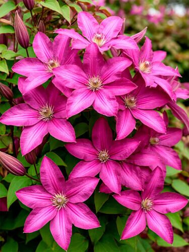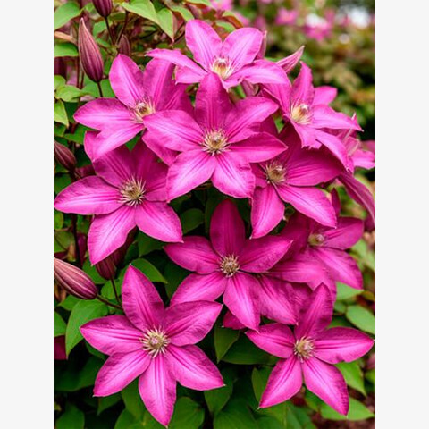 | Крупноцветковый ранний сорт. Крупные цветки насыщено-розовые цветы с более темными продольными полосками. Пыльники бледно-желтые на белых или кремовых нитях. Диаметр цветка от 10 до 18 см., образует от 6-8 до 10 чашелистиков, лепестки налегающие друг на друга, с заостренными кончиками.Высота растения: 2-3 м;Обрезка: 2 (слабая);Морозостойкость: зона 4 (до -34°C). |