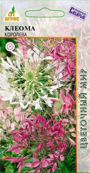 Однолетнее травянистое растение. Стебли, побеги, и листья покрыты железистыми волосками. Листья сложные, пальчато-перестые, на черешках с короткими прилистниками в виде шипов. Цветки оригинальной формы, четырёхлепестковые, 2-3 см в диаметре, на длинных цветоножках, с длинными голубыми или пурпурными тычинками, собраны в верхушечные кистевидные соцветия, смесь оттенков. Растение свето- и теплолюбивое, достаточно засухоустойчивое, предпочитает нейтральные почвы и плохо переносит переувлажнение. Семена на рассаду высевают в марте - апреле или под зиму на глубину 0,5 - 1 см, при температуре 20-23 градуса всходы появляются через 15-20 дней. В грунт высаживают, когда минует угроза заморозков. Используется в миксбордерах, групповых и одиночных посадках. Клеома уместна в сплошной посадке вдоль забора, а также может выступать в роли невысокой ширмы. 90 III-IV IX- V-VI 30x50 VI-IX