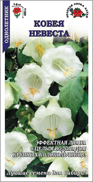 Эффектная лиана, чаще всего выращиваемая как летник, порадует Вас водопадом из крупных колокольчиков зеленовато-кремового цвета, постепенно меняющих окраску до белого. Одновременно на растении присутствуют цветки разных оттенков. Используют для вертикального озеленения: балконы, беседки, шпалеры и ограды.