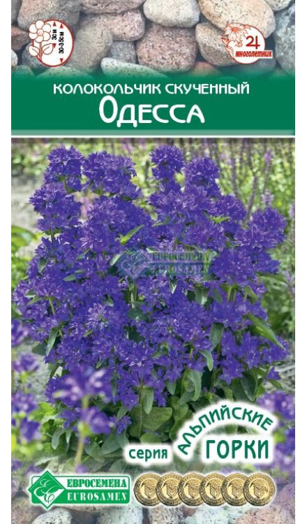 Колокольчик скученный — красивое декоративное многолетнее растение семейства Колокольчиковые, представленное множеством сортов, обладающее одиночным стеблем со стержневым корнем с мочковатыми отростками. Цветки колокольчатой формы фиолетово-голубого окраса, собраны в шаровидное соцветие из 15-20 цветочков. Он распространен в странах Европы и Азии, в основном на сухих лугах, во рвах, на обочинах дорог и в поймах рек. В России увидеть этот цветок можно практически во всех регионах, что говорит о его популярности, так как он является еще и ценным медоносом. Неброский, но красивый колокольчик в ландшафтном дизайне применяют в основном в одиночных и многосоставных клумбах, а также для природных композиций, таких как цветочная поляна и мавританский газон. Культура хорошо сочетается с дельфиниумом и тысячелистником, гвоздиками и незабудками, лихнисом и седумом, пионами и ирисами. Широко используется для оформления бордюров на участке, легко приживается в каменистых садах и на альпийских горках. Посадить его можно поблизости от искусственного водоема, но при этом нужно следить, чтобы почва была хорошо дренированной.