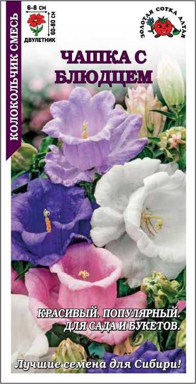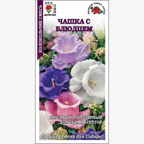 Один из самых красивых и популярных видов колокольчиков. Растение прямостоячее. Крупные цветки нежных оттенков с приятным ароматом, собранные в эффектные соцветия, по форме напоминают чашку, стоящую на блюдце. Колокольчик используют в миксбордерах и рабатках, одиночно и группами на газоне, для срезки в букеты. Цветет на второй год с июня по сентябрь.