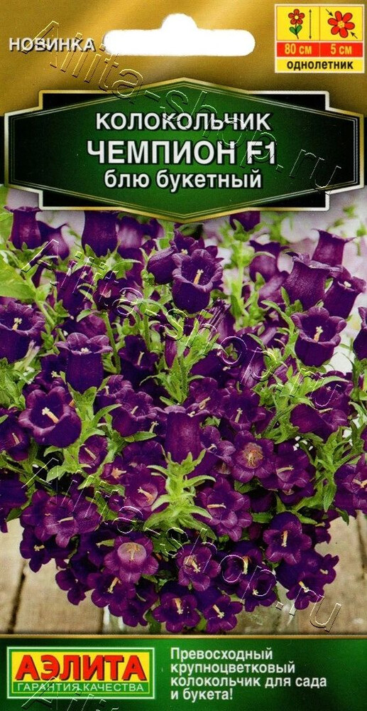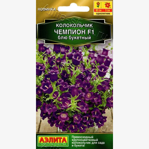 • Крупноцветковый колокольчик селекции компании Sakata. Гибридная серия «Чемпион» специально предназначена для срезки, очень известна и востребована в мировом цветоводстве. Растения обильно цветут в год посева, в отличие от большинства средних колокольчиков, выращиваемых в качестве двулетников. Формируют многостебельные кустики высотой около 70-80 см. Бутоны на побегах распускаются одновременно, что придает особую декоративную ценность. Цветки нежных окрасок, диаметром 3-5 см. Все оттенки колокольчиков очаровательно выглядят вместе в одном букете. Растения можно выращивать в придомовых цветниках и крупных вазонах.