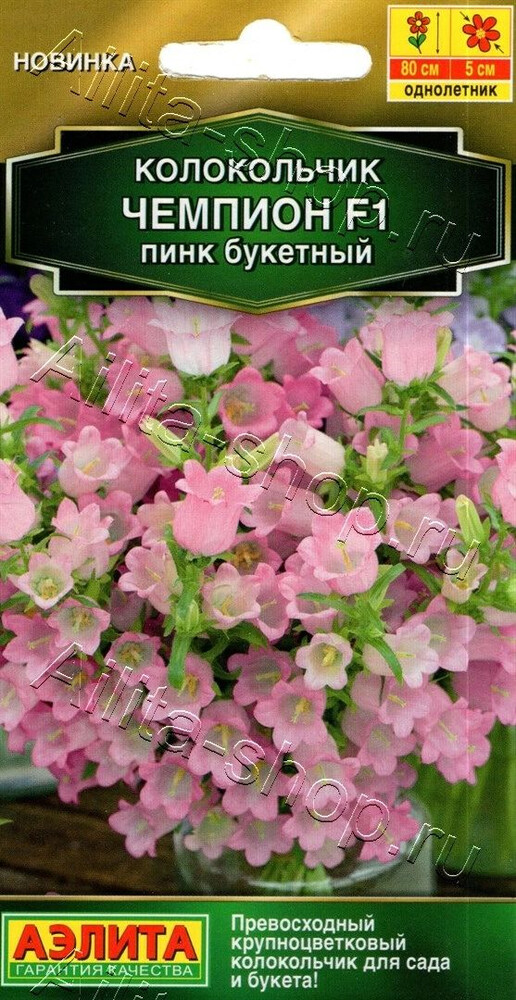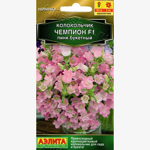 Крупноцветковый колокольчик селекции компании Sakata. Гибридная серия «Чемпион» специально предназначена для срезки, очень известна и востребована в мировом цветоводстве. Растения обильно цветут в год посева, в отличие от большинства средних колокольчиков, выращиваемых в качестве двулетников. Формируют многостебельные кустики высотой около 70-80 см. Бутоны на побегах распускаются одновременно, что придает особую декоративную ценность. Цветки нежных окрасок, диаметром 3-5 см. Все оттенки колокольчиков очаровательно выглядят вместе в одном букете. Растения можно выращивать в придомовых цветниках и крупных вазонах.