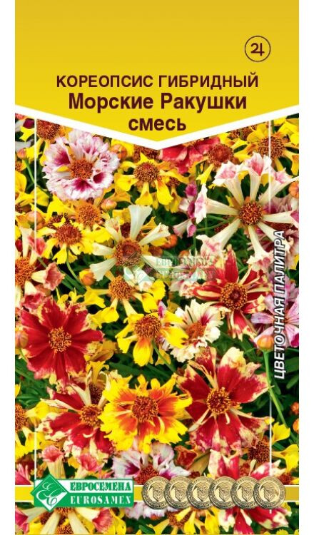 Кореопсис - красивоцветущее травянистое растение, принадлежащее к семейству Астровые, называемое в народе Парижской красавицей и происходящее из прохладных и сухих районов Северной Америки, где растут в диком виде в песках, прериях. Сегодня науке известно около 100 видов кореопсисов. Растение цветет все лето, благодаря чему в саду создается идиллическая, праздничная атмосфера. Он станет украшением любой клумбы или рабатки, идеально подходит для садов в деревенском, сельском, натуралистическом стилях, выглядит красивым на многолетних рабатках, цветниках, Парижская красавица хороша для срезки, весьма эффектна в букетах. Декоративные качества, неприхотливость и простой уход делают его частым гостем в наших садах, выращивается как однолетнее растение. Морские Ракушки- уникальная новинка предстоящего сезона среди кореопсисов с зазубренными цветками различных окрасок необыкновенной формы! Несомненно, он станет настоящим фаворитом в озеленении придомовых территорий и дачных участков, его следует выращивать на задней части цветников.