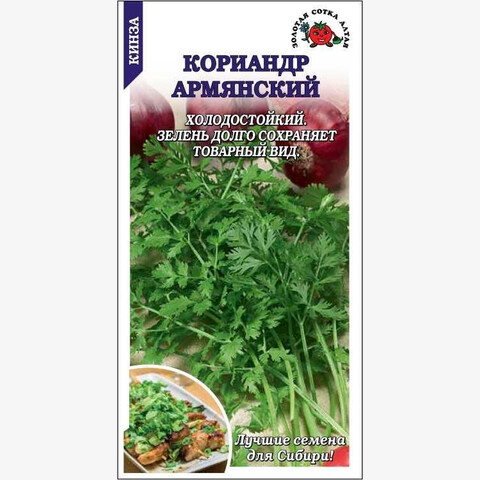 Сорт среднеспелый, холодостойкий, устойчив к раннему стеблеванию. От всходов до сбора зелени 30-45 дней. Растение полупрямостоячее, средневетвистое. Листья темно-зеленые, с приятным вкусом и изысканным ароматом, быстро отрастают и долго сохраняют товарный вид. Зелень используют в кулинарии, семена добавляют в маринады, пряные смеси и выпечку. Отличное лекарственное растение и медонос.