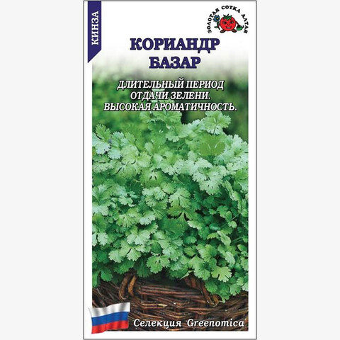 Среднеспелый сорт с длительным периодом хозяйственной годности. Растение высокое, компактное, полупрямостоячее. Листья зеленые, глянцевые, с крупно-рассеченными долями, нежные, с насыщенным ароматом, богаты эфирными маслами, быстро отрастают, сохраняют ароматичность и привлекательный вид при транспортировке. Зелень используют в кулинарии, семена добавляют в маринады, пряные смеси и выпечку.