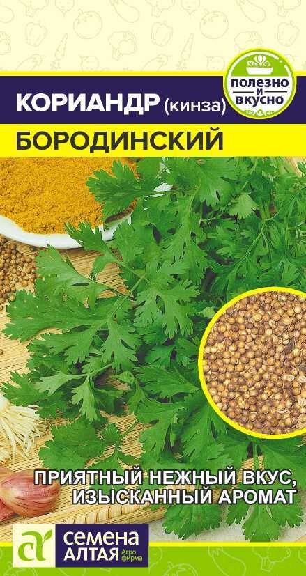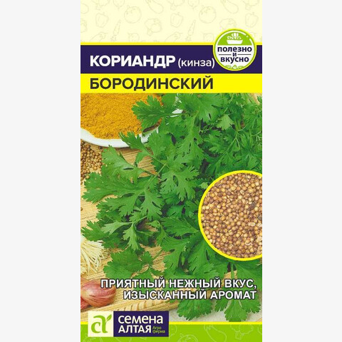Среднеспелый сорт (40-45 дней). Растение компактное (70-75 см). Листья зеленой окраски, сочные, с повышенной ароматичностью. Рекомендуется для использования в качестве салатной зелени и пряной приправы. Место посадки: нетребователен к почвам, предпочитает слабокислые, плодородные грунты. Лучшие предшественники — картофель, огурец, капуста, морковь, свекла Освещение: обильное, выносит периодическое затенение Предпосевная подготовка: не проводится Сроки посева: сеют весной, когда температура почвы достигнет +6°С (апрель-май), летом (июль) и под зиму (октябрь) Посев на рассаду: не предусмотрено Посев в грунт: в неглубокие бороздки на уплотненный грунт, по 2-3 штуки, на глубину 0,5-1 см. Посадочный интервал 12х5 см. Затем посевы необходимо обильно полить и накрыть укрывным материалом или пленкой до появления всходов. Всходы появляются от 7 до 20 дней Пикировка/перевалка: не предусмотрена Уход: при перекопке осенью вносят перегной или компост, весной перед посевом — комплексные минеральные удобрения Сбор урожая: проводится выборочно, по мере формирования зеленой массы и в зависимости от назначения продукции. Если необходимы семена, то растения не срезают, оставляют до цветения и плодоношения