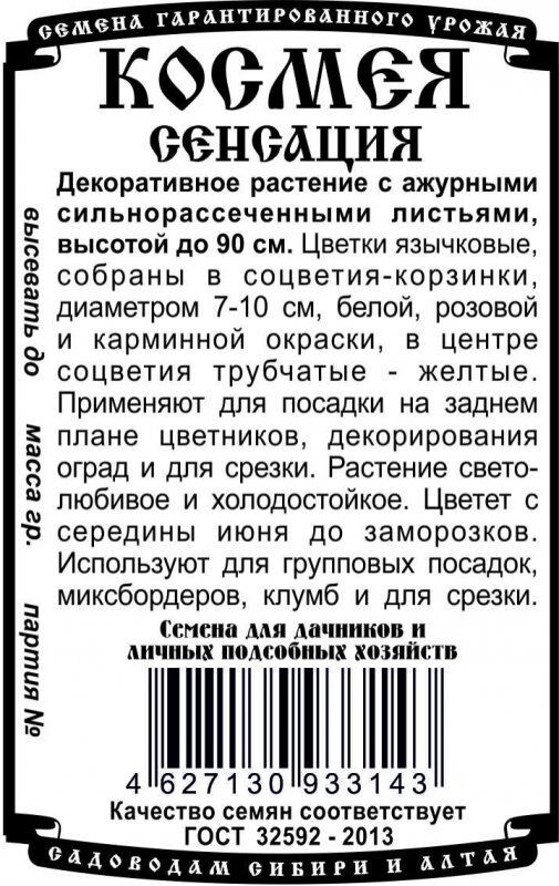 Декоративное растение с ажурными сильнорассеченными листьями, высотой до 90 см. Цветки язычковые, собраны в соцветия-корзинки, диаметром 7-10 см, белой, розовой и карминной окраски, в центре соцветия трубчатые - желтые. Применяют для посадки на заднем плане цветников, декорирования оград и для срезки. Растение светолюбивое и холодостойкое. Цветет с середины июня до заморозков. Используют для групповых посадок, миксбордеров, клумб и для срезки.