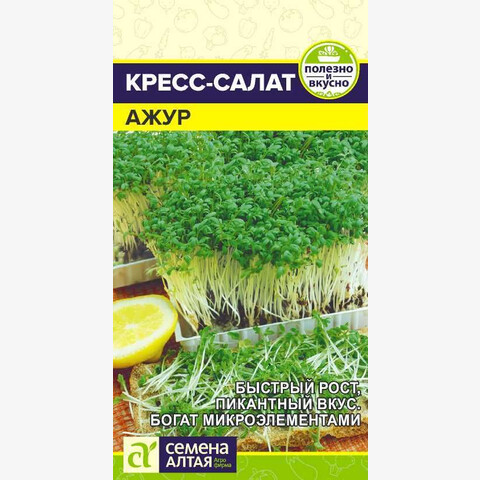 • Среднеранний (32-45 дней) сорт. Розетка листьев высотой 18-26 см, лист крупный, светло-зеленый. Вкус приятный, острый, горчичный. Используется в свежем виде. Культура ценится за высокое содержание витаминов, солей железа, йода и калия. Рекомендуется для быстрого получения зелени в зимний и ранневесенний период. Зелень срезают через 2-3 недели после появления всходов. Семена можно использовать для получения проростков. Место посадки: нетребователен к почвам, при комнатном выращивании можно использовать любой влагоудерживающий субстрат: торф, минераловатные пробки, вату Освещение: обильное, выносит затенение Предпосевная подготовка: не требуется Сроки посева: в открытый грунт в апреле-августе, в комнатных условиях в течение всего года, посевы проводят с интервалом 7-10 дней для получения постоянного урожая зелени Посев на рассаду: не предусмотрен Посев в грунт: производят на глубину 0,5-1 см. Всходы прореживают на расстояние 20 см. На микрозелень высевают в плошки с небольшим количеством субстрата. Семена густо рассыпают по поверхности субстрата, увлажняют. Первые ростки, как правило, появляются в течение 1-2 часов. Пикировка/перевалка: не предусмотрена Уход: важно не допускать пересыхания субстрата Сбор урожая: проростки кресс-салата срезают в фазе семядольных листочков или при появлении первых настоящих листьев. У взрослых растений в пищу употребляют зеленную массу