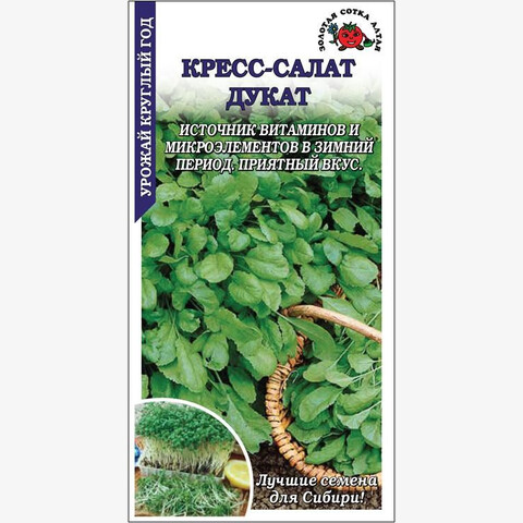 Ранний (14-18 дней) сорт для открытого грунта и круглогодичного выращивания в домашних условиях и отапливаемых теплицах. Розетка полуприподнятая, высотой и диаметром до 20 см. Листья цельные, яйцевидные, длиной до 12 см и шириной до 3 см, слабоволнистые, зеленые, нежные, приятного вкуса. Кресс-салат богат витаминами и микроэлементами, является их источником в зимний период. Используется в салатах и в качестве приправы к мясным блюдам.
