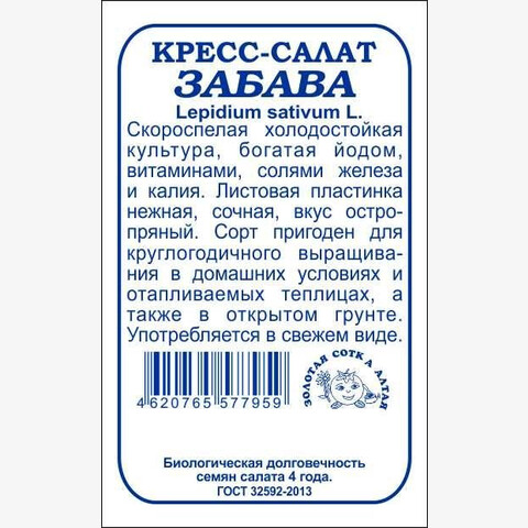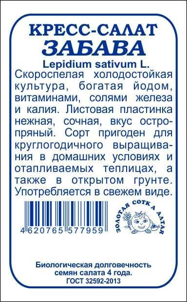Скороспелая холодостойкая культура, богатая йодом, витаминами, солями железа и калия. От всходов до хозяйственной годности около 15 дней. Нежные и сочные листья обладают приятным остро-пряным вкусом. Сорт используется для приготовления салатов и в качестве приправы к мясным блюдам. Пригоден для круглогодичного выращивания в домашних условиях(на подоконнике) и в отапливаемых теплицах.
