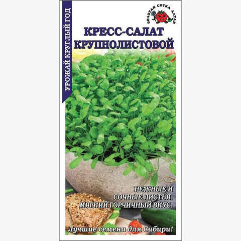 Ранний сорт для сезонного выращивания в открытом грунте и круглогодичного в домашних условиях и отапливаемых теплицах. Срок созревания 20-25 дней. Розетка полуприподнятая, высотой 8-10 см и диаметром 15-20 см. Лист крупный, светло-зеленый, удлиненно-овальный, нежный и сочный, с мягким горчичным вкусом. Сорт отличается быстрым ростом, используется в салатах и в качестве приправы к мясным блюдам.