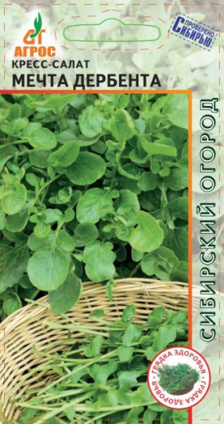 Среднеранний сорт. Розетка листьев полуприподнятая, высотой 18 см, диаметром 6 см. Лист крупный, длинночерешковый, зеленый, цельный, зубчатый и волнистый по краю, сочный, нежный. Масса товарного растения - 30 г. Вкус пряный, слабоострый. Рекомендуется для использования в свежем виде молодых листьев. Особенности выращивания: кресс-салат - растение длинного дня и в летний период быстро переходит к стрелкованию, поэтому выращивать его нужно рано весной, осенью и в закрытом грунте. 18 - V - 2-5 VI-IX
