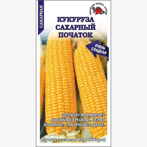• Среднеранний сорт, дружно формирующий высокий урожай. Растение высотой 1,5-1,7 м, с низким заложением первых початков. Початок слабоконической формы, длиной 15-18 см и массой около 200 г. Зерно ярко-желтого цвета, очень нежное, сочное и сахарно-сладкое. Сорт рекомендуется для потребления в свежем и вареном виде, заморозки и консервирования.