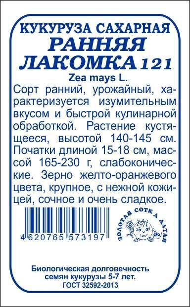 Сорт очень ранний, высоко урожайный. Растение высотой 140-145 см, кустящееся. Початки слабоконические, длиной 15-18 см, массой 165-230 г. Зерно желто-оранжевое, крупное, с нежной кожицей, изумительного сладкого вкуса. Сорт отличается быстрой кулинарной обработкой (5-10 минут), используется в свежем и вареном виде, для заморозки и консервирования.