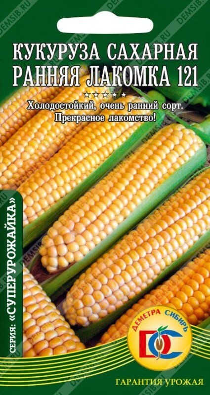 Раннеспелый, высокоурожайный сорт сахарной кукурузы. Растение высотой 170-190 см. Початки слабо-конической формы, длиной 18 см, массой до 250 г. Зерно желтое, отличных вкусовых качеств. Культура обладает высокими питательными и диетическими свойствами, содержит незаменимые аминокислоты, комплекс витаминов. Для потребления в свежем, вареном виде и для заморозки.