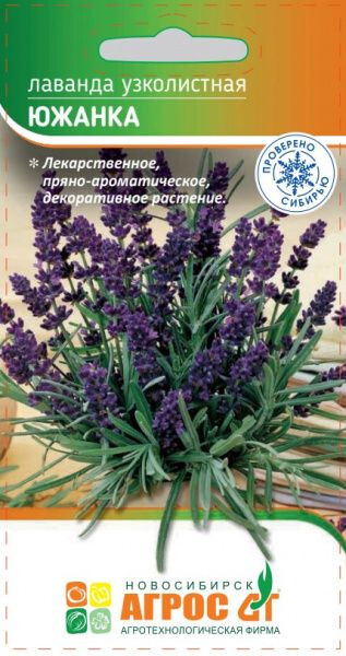 Многолетнее лекарственное, эфирномасличное, пряно-ароматическое, медоносное и декоративное растение семейства Яснотковые. Многочисленные хорошо разрастающиеся побеги образуют куст высотой 50-60 см. Цветоносы с ароматными голубовато-сиреневыми колосовидными соцветиями длиной 10-13 см. Цветет в июне-августе. Предпочитает солнечные, теплые, защищенные от ветра участки с сухой, хорошо дренированной почвой. Особенности выращивания: для хороших всходов семенам лаванды нужна стратификация. Для этого семена помещают во влажный песок и на 1-1,5 месяца ставят в холодильник при температуре +2-4 °С. Рекомендуется укрытие на зиму. 50-60 - V - 4x20 VI-IX