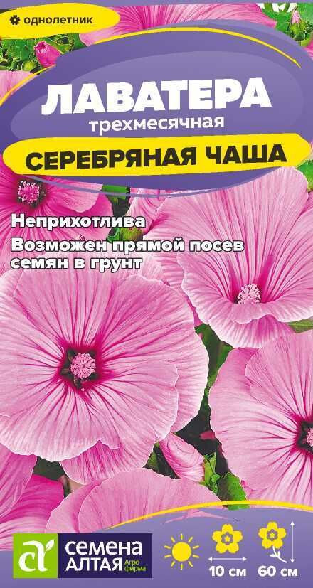 Однолетнее нарядное ландшафтное растение семейства Мальвовые высотой до 60 см. Растение мощное, ветвистое, очень неприхотливое. Цветки воронковидные крупные, 8-10 см в диаметре, розовой окраски с серебристым отливом и выраженными бордовыми прожилками. Характеризуется обильным и продолжительным цветением, невзыскательностью к условиям выращивания. Великолепно смотрится в одиночных и групповых посадках, а также в миксбордерах. Растение нетребовательно в уходе, неприхотливо к условиям выращивания, устойчиво к засухе, выдерживает сильные порывы ветра и небольшие заморозки. Предпочитает открытые солнечные участки на рыхлых, легких, хорошо дренированных почвах. Выращивают как прямым посевом семян в открытый грунт, так и через рассаду. В открытый грунт семена высевают в конце апреля – начале мая гнездами, по 2-3 семечка в лунку. Интервал между лунками – 30-40 см. При рассадном способе выращивания посевы проводят с конца марта в торфяные горшочки на глубину 1 см. Посевы увлажняют и накрывают прозрачной пленкой или стеклом до появления всходов, пленку периодически снимают для проветривания посевов и удаления конденсата. В грунт рассаду высаживают в конце мая (когда минуют заморозки) вместе с торфяными горшочками. Цветение с конца июня до осенних холодов.