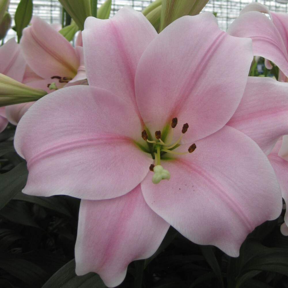 • Нежнее цвета не бывает! Лилия с лепестками нежнейшего розового оттенка! Цветет крупными цветками- колокольчиками диаметром в 15-20 см. Сорт отличается высокой декоративностью благодаря длительному периоду цветения.