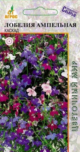 Однолетник. Смесь сортов с обильно цветущими, свешивающимися побегами. Окраска цветков белая, голубая, сиреневая, розовая. Лобелия холодостойка, светолюбива и влаголюбива. Почвы нужны питательные, но без избытка органических удобрений. Выращивают это растение рассадным способом. Посев проводят во второй половине марта - начале апреля. Почву тщательно выравнивают и слегка уплотняют, увлажняют и по поверхности рассыпают семена. Сверху ни чем не засыпают, а посевы накрывают стеклом или пленкой и периодически сбрызгивают водой из опрыскивателя. Всходы появляются через 10-15 дней. Из лобелии делают бордюры, рабатки, ковровые цветники. Она прекрасно смотрится на горках, в подвесных корзинах, кашпо, вазонах, в балконных ящиках. 40 III-IV - V-VI 15-20 VI-IX