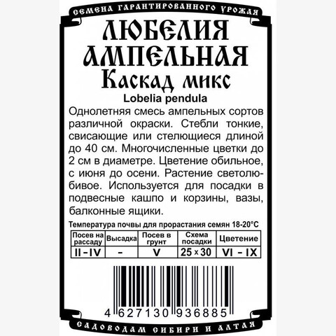 Однолетняя смесь ампельных сортов различной окраски. Стебли тонкие, свисающие или стелющиеся длиной до 40 см. Многочисленные цветки до 2см в диаметре. Цветение обильное, с июня до осени. Растение светолюбивое. Используется для посадки в подвесные кашпо и корзины, вазы, балконные ящики.