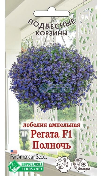 Лобелия — культура с обильным и приятным глазу цветением, благодаря чему она довольно часто используется для создания впечатляющих композиций в подвесных кашпо. "Регата" – ампельная лобелия с красивыми и утонченными цветами, которая на протяжении многих лет является одной из самых любимых у цветоводов и профессиональных озеленителей, ведь она сочетают в себе экстра раннее начало цветения (до 4 недель раньше других ампельных лобелий), широкий выбор расцветок (в том числе уникальных), продолжительное и обильное цветение. Все это, вместе с неприхотливостью в выращивании, дает ей право называться ЛИДЕРОМ РЫНКА! Растение характеризуется длинными побегами, для формирования шаровидного габитуса растений их рекомендуется прищипывать, это поспособствует образованию красивой кроны и хорошей ветвистости. Идеальное решение для озеленения подвесных корзин, балконных ящиков, любых контейнеров и вазонов.