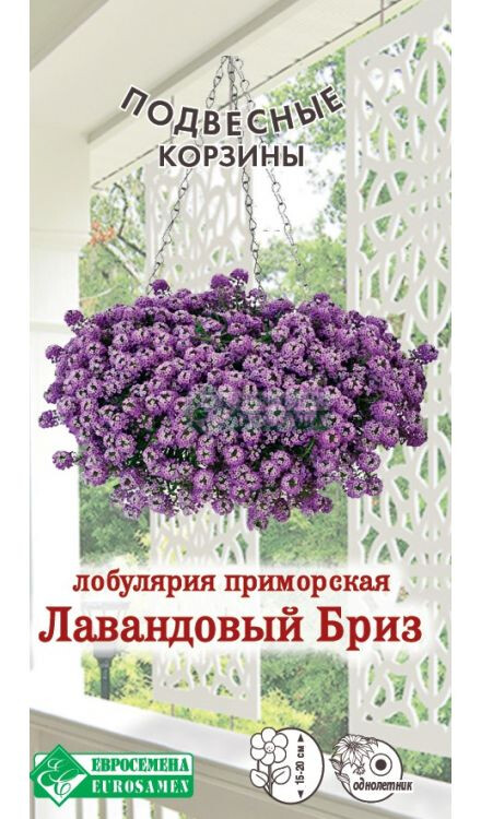 Лобулярия — травянистое цветущее растение семейства Крестоцветные. Несмотря на то, что в ее роду есть и многолетние разновидности, в культуру выведена и активно используется только один однолетний вид, получивший в современной ботанической классификации название лобулярия приморская. В природе произрастает в местах с далеко не самой плодородной почвой — на скалистых и галечных ландшафтах, в расщелинах гор, на каменистых насыпях. Лавандовый Бриз - новый тетраплоидный алиссум с ампельной формой куста, разрастающийся в ширину до 30-40 см, что делает его идеальным для висячих корзин, кашпо, балконных ящиков и контейнеров. Цветки крупные и лавандовые на свисающих побегах, хорошо поддающихся формировке и обрезке, пахнут медом и пышно цветут весь период вегетации. Цветение настолько обильное, что практически не видно листьев. С ним гармонично сочетается обриета, резуха, и другие низкорослые стелющиеся растения, он стойко переносит засуху. Не боится холодов.