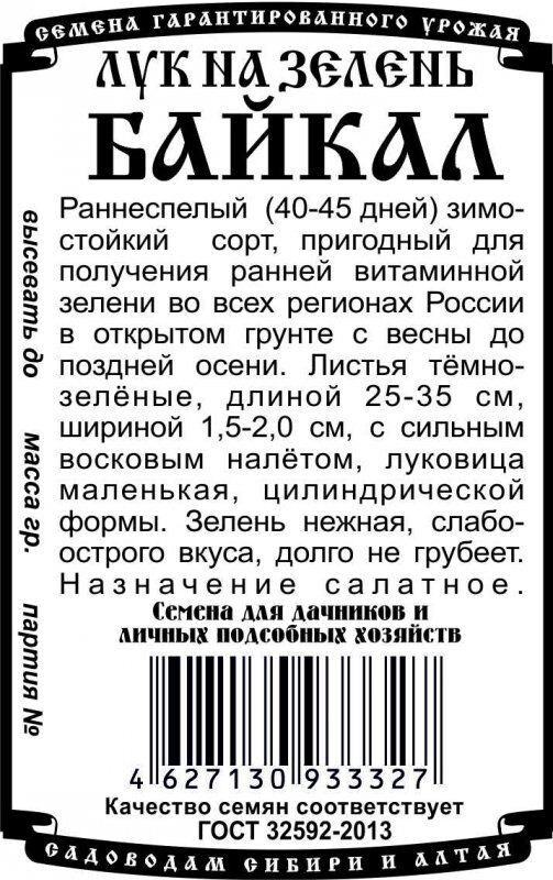 Раннеспелый (40-45 дней) зимостойкий сорт, пригодный для получения ранней витаминной зелени во всех регионах России в открытом грунте с весны до поздней осени. Листья тёмно-зелёные, длиной 25-35 см, шириной 1,5-2,0 см, с сильным восковым налётом, луковица маленькая, цилиндрической формы. Зелень нежная, слабоострого вкуса, долго не грубеет. Назначение салатное.