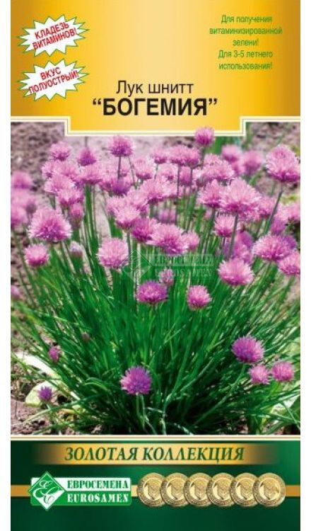 Лук шнитт Богемия – многолетнее растение для получения витаминизированной зелени. Рекомендуется для 3-5-летнего использования. Период от массового отрастания до первой срезки весной 2-3 недели. Лист трубчатый, полый, шиловидный, темно-зеленый, со слабым восковым налетом. Вкус полуострый. Растение сильно ветвится, масса листьев в первый год 20-30 г с одного растения, во второй год – до 200 г. Листья отличаются высоким содержанием витамина С, каротина, углеводов, сахаров и белка. Размножается семенами и делением куста. Не поражается болезнями. Ценится за раннее отрастание листьев весной, высокую урожайность и высокое качество продукции.