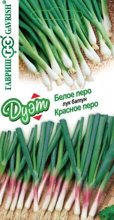 Лук на зелень Белое перо: Сорт формирует белую луковицу и темно-зеленую розетку листьев среднего размера, полуострого вкуса, с небольшим восковым налетом. Ложный стебель без антоциановой окраски. Сорт отличается высокой продуктивностью. Рекомендуется для использования в свежем виде в салатах и винегретах, супах, для украшения закусок. Лук Красное перо: Урожайный сорт, пригодный для получения ранней зелени во всех регионах России. Формирует небольшую луковицу и компактную зеленую розетку листьев. Листья среднего размера, сочные, нежные. Ложный стебель с антоциановой окраской. Используется в свежем виде, в кулинарии, можно замораживать и употреблять в зимний период как поливитаминную зелень.
