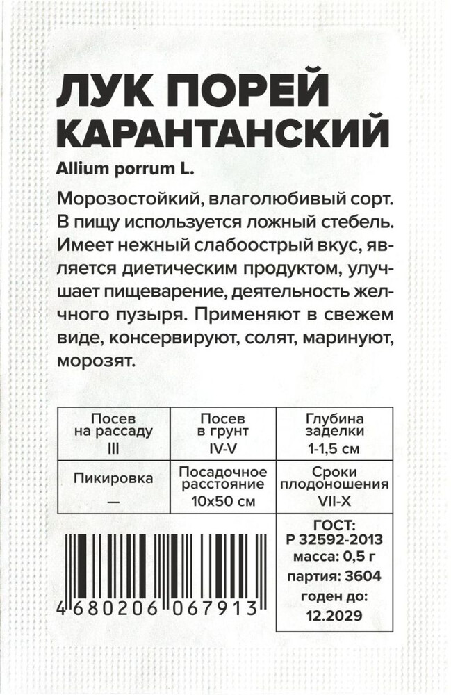 • Культура: Лук порей