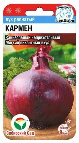 Двухзачатковый или трехзачатковый сорт имеет ранние и средние сроки созревания, менее чем за 3 месяца луковицы успевают полностью вызреть. Подходит для выращивания в областях с коротким летом или неблагоприятными погодными условиями. Нежный, мягкий, пикантный вкус и неприхотливость в содержании относительно быстро вывели сорт на популярные позиции среди огородников. Плод сам по себе крепкий, цвет шелухи насыщенный фиолетовый или темно-красный. Мякоть близка к белому окрасу. Луковицы почти правильной круглой формы. Каждая репка достигает веса около 70 г, рекордсмены сорта — до 120 г. Мякоть луковиц сочная, хрустящая. Употребляется в свежем виде. Лежкость лука превосходная до 8 месяцев, при этом отлично сохраняет товарный, внешний вид и свои вкусовые качества.