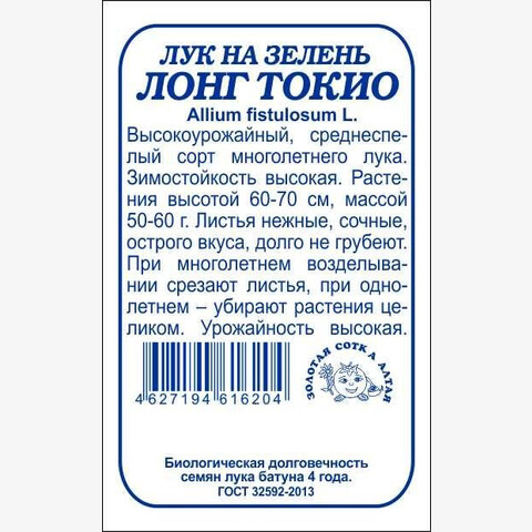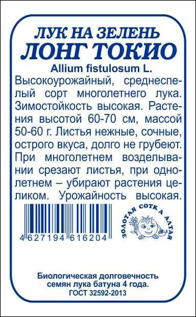 Высокоурожайный, среднеспелый сорт многолетнего лука. Зимостойкость высокая. Растения высотой 60-70 см, массой50-60 г. Листья нежные, сочные, острого вкуса, долго не грубеют. При многолетнем возделывании срезают листья, при однолетнем – убирают растения целиком. Урожайность высокая.